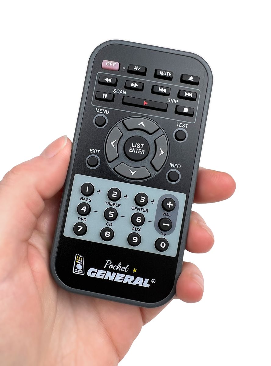 Ovladač je dodáván ve verzi značkového dálkového ovladače General POCKET (zobrazen vlevo). Garantujeme Vám, že dostanete ovladač, který plně nahradí Váš původní originální ovladač a bude mít naprosto všechny funkce stejné.