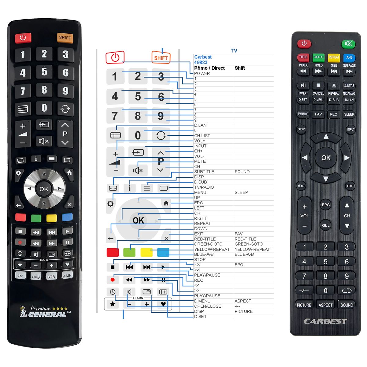 Není to univerzální ovladač, ale ovladač, který je naprogramován a přímo určen pro modely přístrojů uvedené výše. Není třeba žádné párování, žádné kódy. Obdržíte od nás ovladač, který je připraven k použití - jediné, co musíte udělat, je vložit baterie a ovladač hned funguje. Podívejte se na obrázek ovladače a ujistěte se, že jsou v tabulce všechny funkce jako na původním originálním ovladači.
