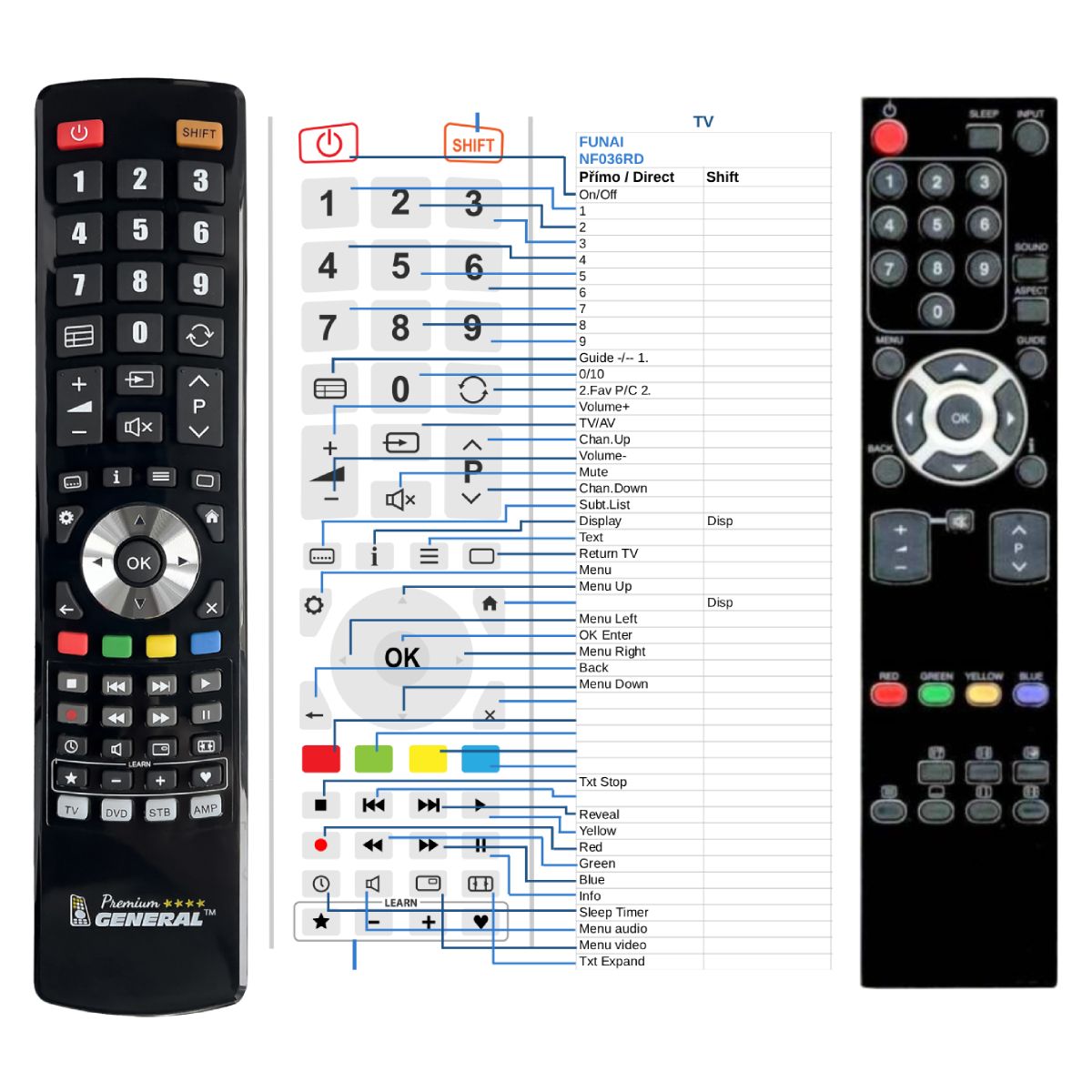 Náhradní dálkový ovladač FUNAI NF021RD, NF028RD, NF031RD, NF036RD - 100% náhrada 1:1 za originální dálkový ovladač.