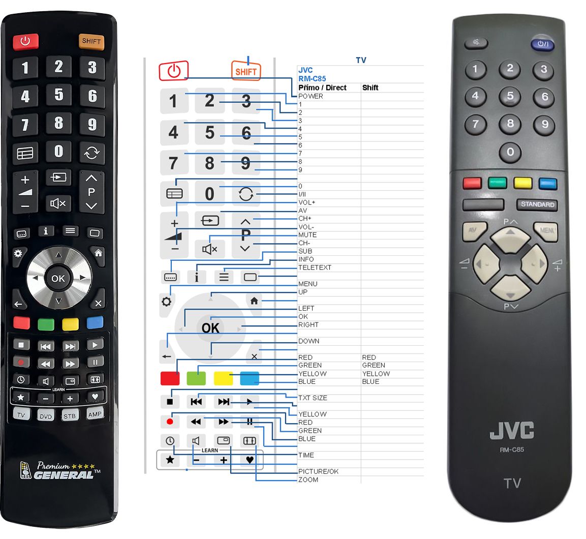 Náhradní dálkový ovladač JVC RM-C85 (RMC85) - 100% náhrada 1:1 za originální dálkový ovladač.