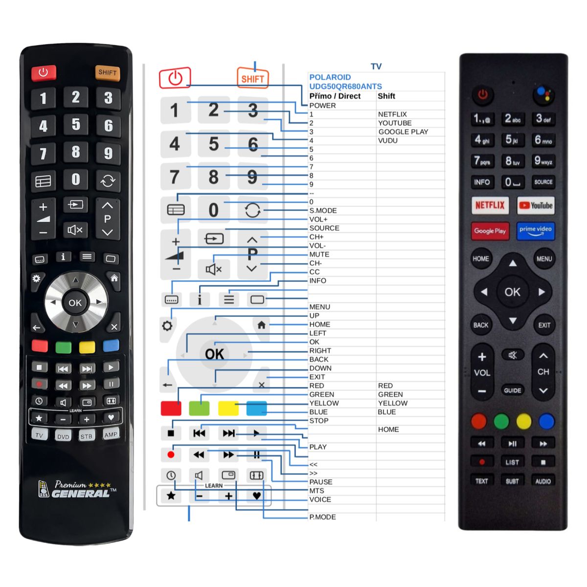 Náhradní dálkový ovladač POLAROID UDG50QR680ANTS - 100% náhrada 1:1 za originální dálkový ovladač.