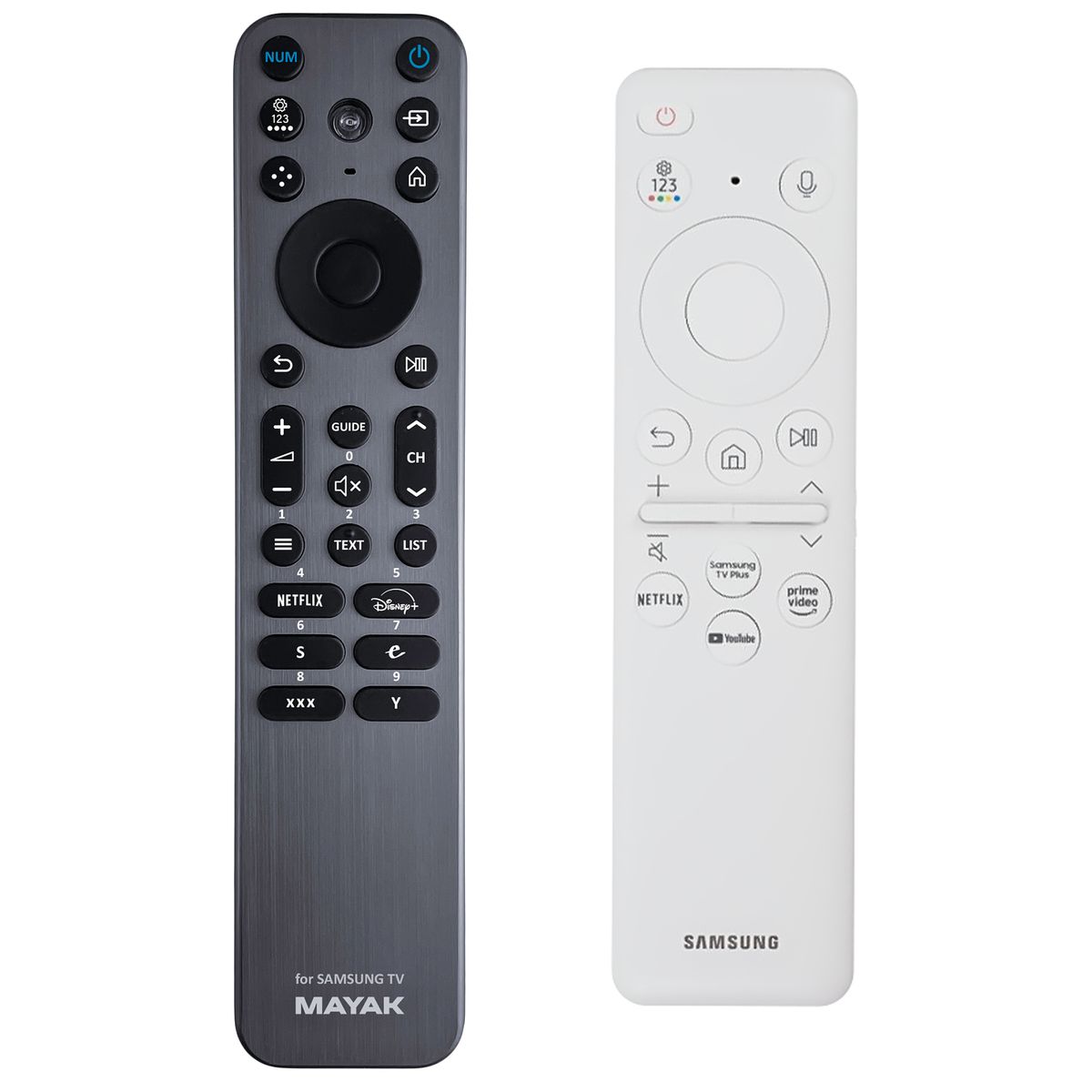 Ovladač je dodáván ve verzi dálkového ovladače MAYAK (zobrazen vlevo). Ovladač již není potřeba párovat nebo kódovat. Obdržíte od nás ovladač, který je připraven k použití – stačí vložit baterie a ovladač hned funguje.