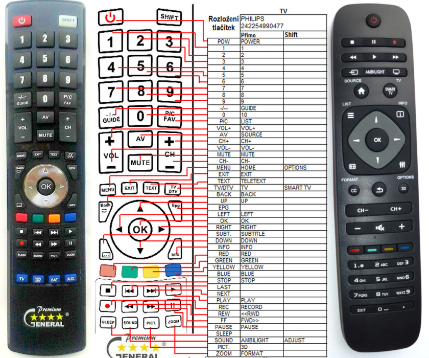 Náhradní dálkový ovladač PHILIPS 242254990477 - 100% náhrada 1:1 za originální dálkový ovladač.