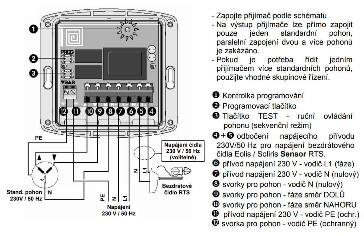 Universal Receiver RTS je přijímač dálkového ovládání, určený pro ovládání prvků slunečního zastínění, např. markýz, s možností využívat funkce sluneční a větrné automatiky. • přímé připojení jednoho standardního pohonu LT, LT NHK • lze ovládat všemi ovladači z programu Somfy RTS • funkce sluneční automatiky (s vhodným bezdrátovým čidlem a dálkovým ovladačem Telis Soliris RTS nebo Telis Composio RTS) • funkce větrné automatiky (s vhodným bezdrátovým čidlem)